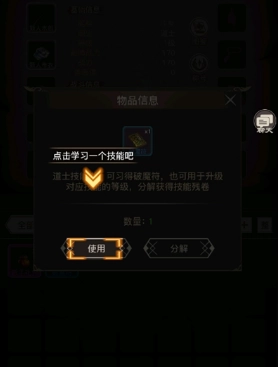 要是背包里有新的技能书,你就能点击使用按钮,直接掌握新技能。
