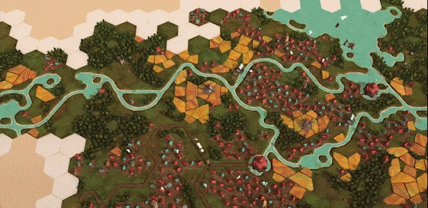 从一叠由程序生成的地景板块开始,持续从最上层抽取板块,挑选希望放置的未开发区域,通过旋转调整到最佳位置进行组合,以此创造出不同规模的村落地形,从而获取更高分数。
