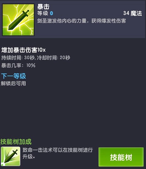 主动技能,增加暴击伤害10X