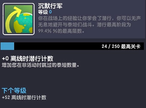该被动效果可提升您处于非操作状态下自动略过的泰坦数量,同时增加离线期间的潜行统计数值。