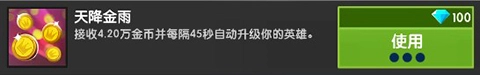 特权:可领取42000金币,且英雄每隔四十五秒会自动升级。
