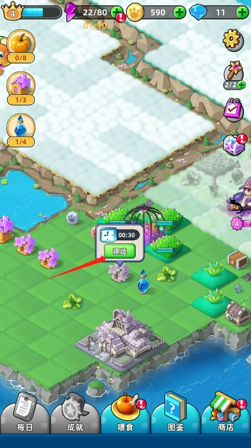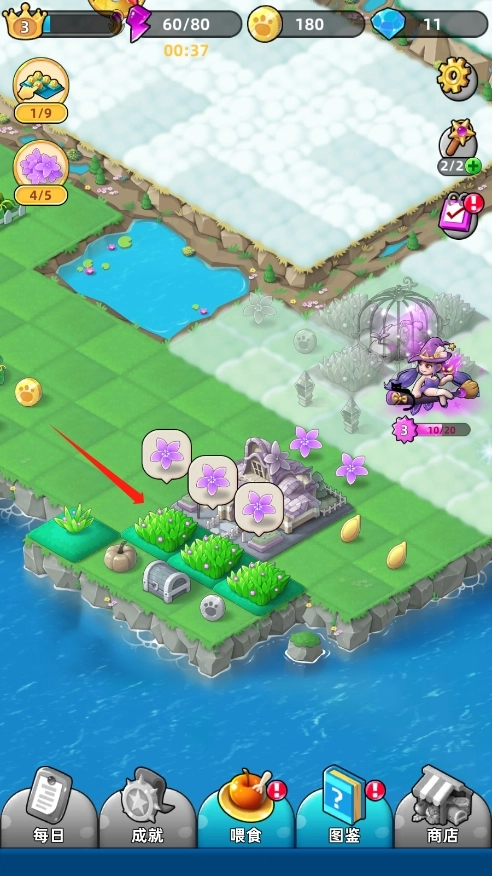 继续进行合并操作,能够发现新的动物、新的区域以及新的物品。点击魔法球还能对女巫发起攻击,一旦成功攻击女巫,就可以解锁新的区域。