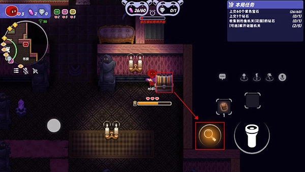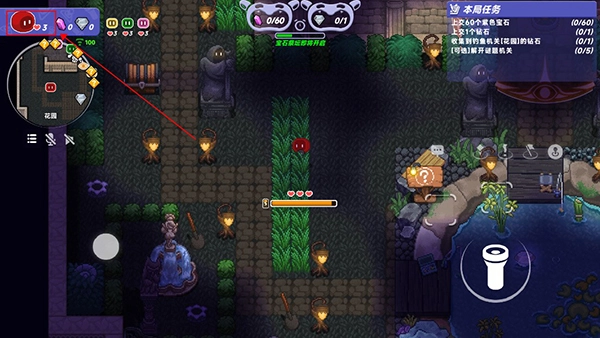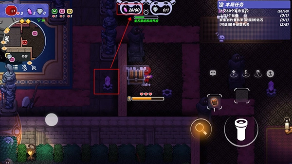 游戏开始后,玩家需收集紫色水晶,全队累计需达到六十个。