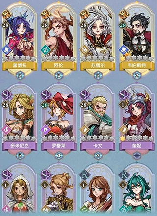 游戏开局赠送的四个主角,目前虽是普通的R卡,但经过养成能够成长为SSR品质!(仅限这四个角色,其他英雄无法做到),要是某个阵容位置始终抽不到更实用的卡牌,