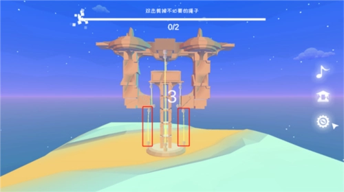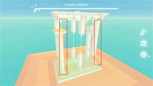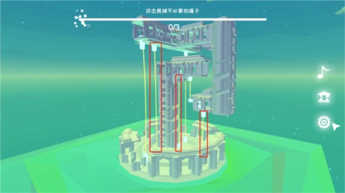第三关要求剪断六根绳子,玩家得先把四个角的绳子剪断。