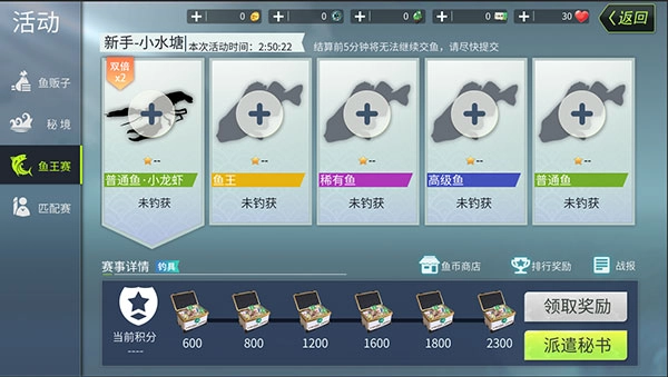 体力分配时,优先选择能获得双倍积分的随机鱼种,其次再考虑鱼王和稀有鱼。普通鱼和高级鱼种之间的积分差距不大,很难通过它们拉开积分上的距离。