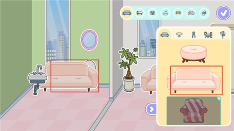 内部为用户提供种类丰富的家居用品,像沙发、桌子、水槽、床、浴缸这类都有,玩家能够挑选自己心仪的家居。