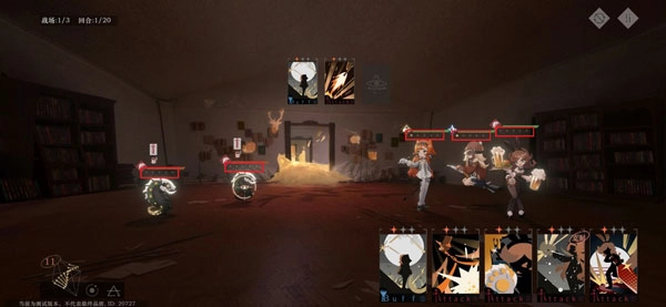 每回合能进行的行动次数由场上的人数决定。从图中可以看到,我方目前场上有三个人,因此本回合我们可以行动三次。不管是选择使用卡牌还是移动卡牌,每次操作都要消耗一点行动点。