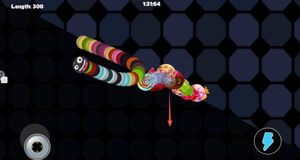 在移动吞噬的过程中,必须时刻留意避开那些比自己体型更长的蛇,一旦被它们吞噬,游戏就会直接结束。