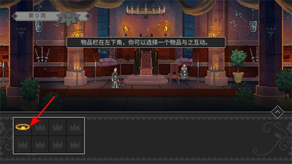 在游戏界面左下角的物品栏里,挑选像王冠这类物品,借助它和场景展开互动,以此来推进并完成相应的游戏任务。