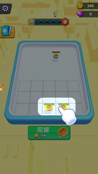 用初始金币购买基础陀螺,先熟悉通过点击屏幕来完成合成的操作方式,接着尝试把两个相同的基础陀螺合并,以此掌握合成的整个流程以及节奏。