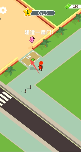 第一步,拖动角色移动到建造位置,点击建造一扇门,需消耗25金币。