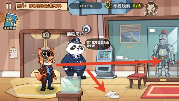 进入游戏后,你得邀请一位好友组建侦探小队,各自挑选扮演狐狸警探或是熊猫局长,接着在警局里从公告板上领取第一个要的神秘案件。