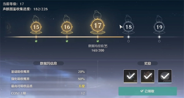 就是在大世界打怪时获得声骸掉落的概率,通常会随着数据坞等级的提升而逐步增加,当数据坞等级达到10级后,这个概率就会固定在20%。