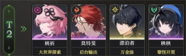 T2角色包括:炽霞、秋水、桃祈、莫特斐、秧秧以及漂泊者。