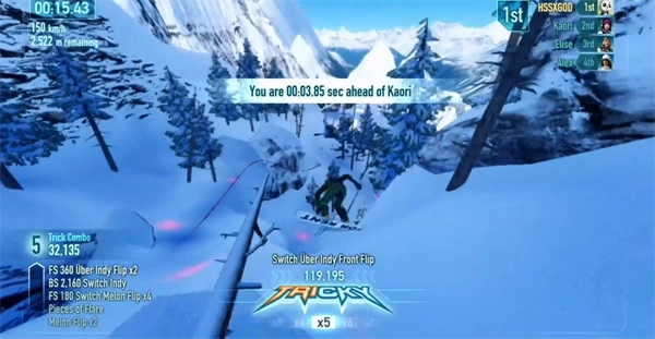 3、【动作】滑雪时不妨大胆尝试各类酷炫动作,每完成一个都能获得额外加分。