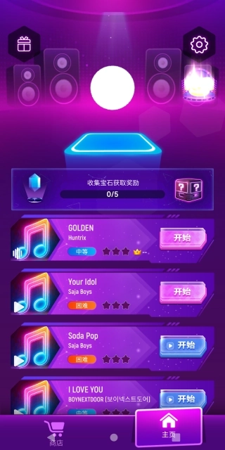 2.之后玩家能够在主页里挑选自己喜爱的音乐关卡来发起挑战。