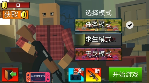 4、每个关卡都会解锁新任务,玩家需要使用武器消灭僵尸,完成任务后即可获取金币奖励。