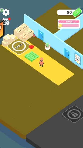 1.首先要操控角色获取初始资金,解锁披萨烤炉、用餐座椅这类基础设备,搭建起运营的基本框架。