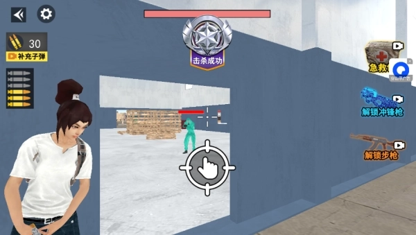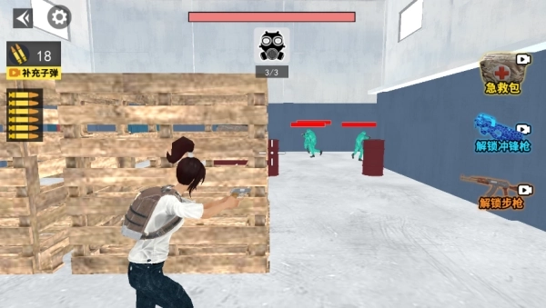4、当遭遇多个目标围攻时,要马上寻找木箱之类的硬质掩体来搭建防御工事,一旦血量降到30%以下就用急救包恢复状态,然后依靠掩体进行分阶段的反击。
