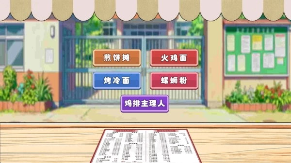 2.如图所示,这里提供煎饼摊、火鸡面、烤冷面、螺蛳粉以及鸡排主理人这五种经营模式供选择。