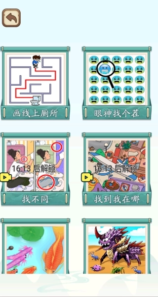 1、进入游戏后,你可以挑选自己感兴趣的玩法,像画线上厕所、眼神找个茬这类都可以。