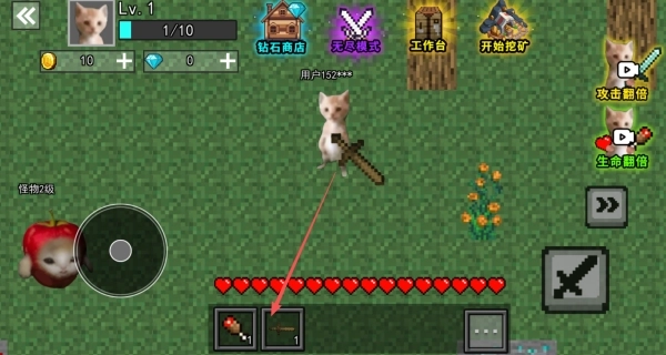 1、化身为哈基米进入地图,点击武器,和其他猫咪敌人展开战斗。