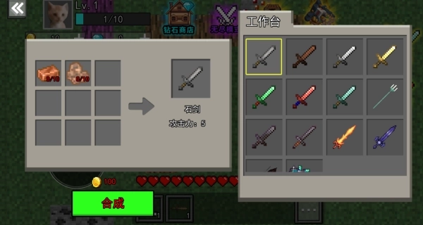 4、打开工作台,挑选各类材料,来打造更强大的武器。