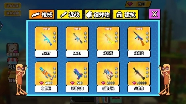 3、前往商店,使用钻石购买适合的武器和枪械,像AK47、加特林这类都可以。