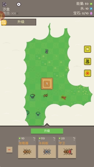3、每一种蚂蚁都能够通过消耗其专属的资源来进行升级,升级之后蚂蚁的各项属性会得到提升,而当进行高阶升级时,还会解锁该蚂蚁特有的专属技能,从而进一步增强其功能性。