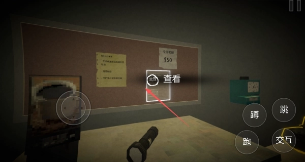 3、当看到公告板这类设有查看提示的交互点时,靠近该交互点后,点击交互栏中的查看按钮,即可获取任务相关信息。