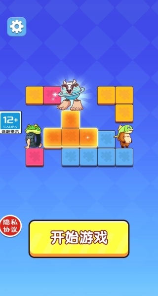 1、进入游戏后,你会看到几个山海经角色站在方块上,点击“开始游戏”就能进入游戏界面。