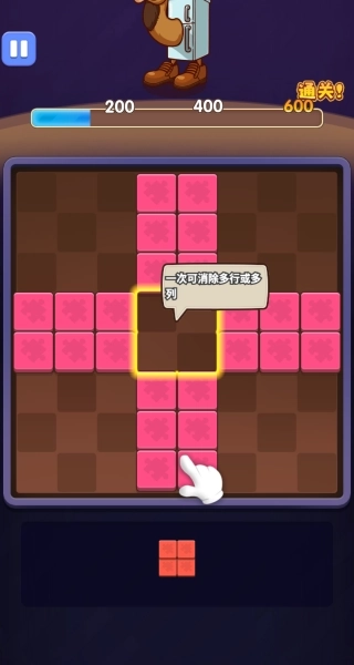 3、在你依据指示将方块填入指定位置后,能够一次性消除多行或者多列的方块。