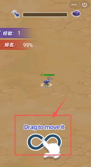 2、按照蓝色小蚂蚁下方“Drag to move it”的提示,拖动蓝色无穷大符号来控制昆虫移动。