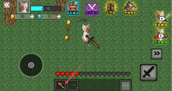 1、点击右下角的攻击按钮来操控角色发起攻击,通过连续消灭敌人来积累经验值。