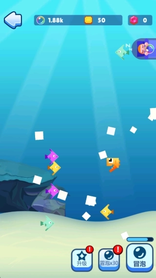 2、积累的气泡可用于兑换装饰道具,个性化打造鱼巢环境,每完成阶段性成长即可解锁新海域地图和特殊玩法模块。