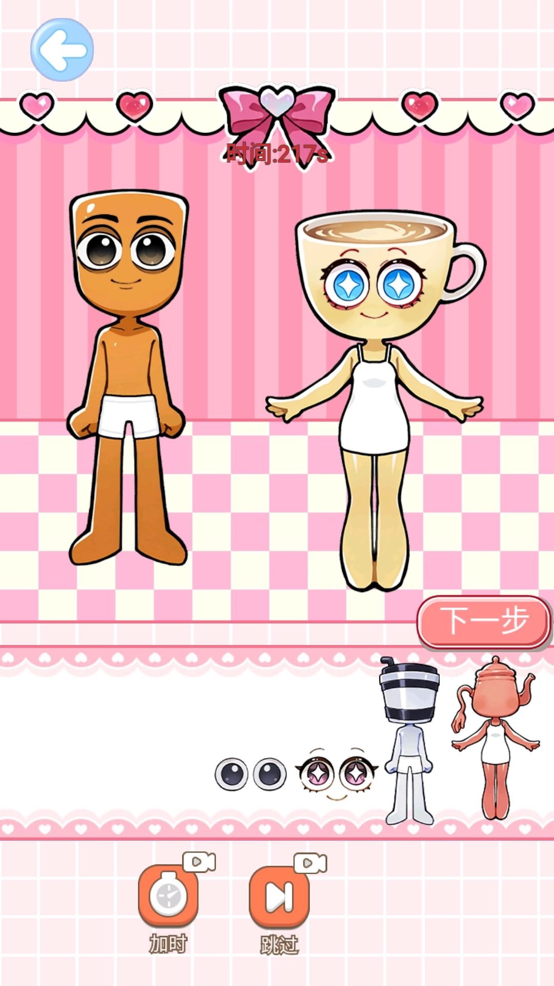 1、首先进入游戏选择房间模板,接着拖动萌系角色、咖啡小姐等贴纸进行场景布置,之后点击家具调整摆放位置,还能滑动屏幕查看全景效果,要是不满意可以随时重置操作。