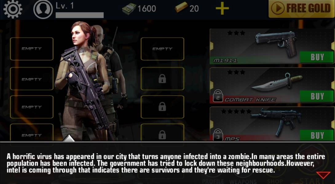 4.游戏设计了丰富多样的武器系统,其中包含多达16种不同类型的枪械。制作团队依照真实武器的数据,对冲锋枪、步枪、狙击枪以及近战武器等进行了高度还原的模拟。玩家可以在武器界面中查看各类枪械的3D模型,进而挑选自己钟爱的枪支,与数量庞大的僵尸展开激烈战斗。