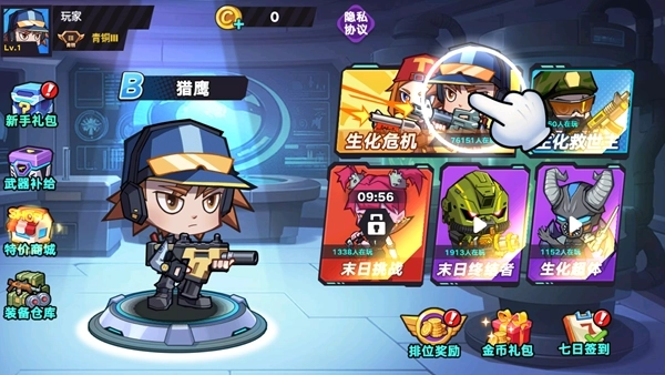 1.进入游戏后,主界面上呈现出生化危机、生化救世主、末日挑战、末日终结者、生化超体等丰富多样的玩法。