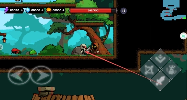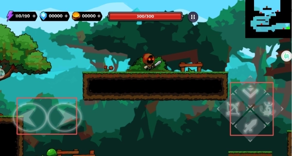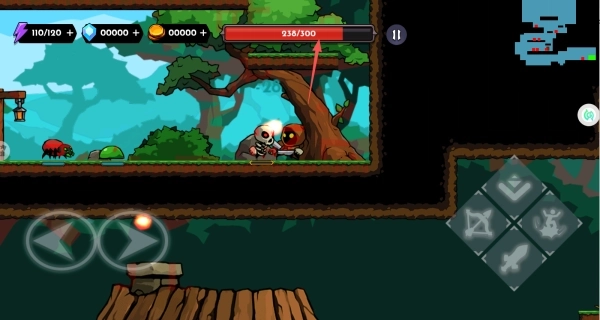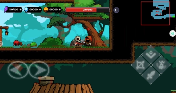 1、进入游戏,点击左边的按钮控制角色移动,右边的按钮进行战斗。