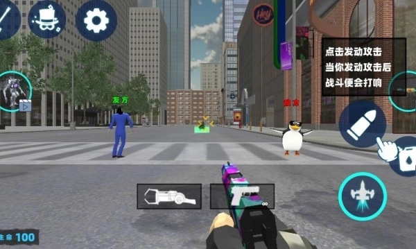 1、游戏启动后,点击沙盒界面,从中选取需要的单位,随后用创造枪把选中的单位生成出来。