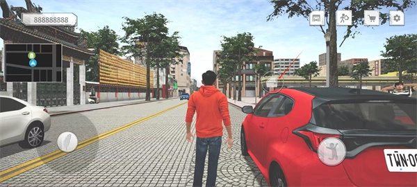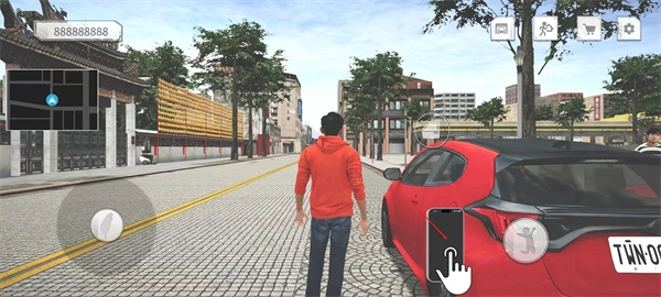 7、这时就可以正式开启自己在此处的汽车驾驶任务了,点击开门按钮进入驾驶座,前往任务终点去体验送外卖的艰辛挑战。