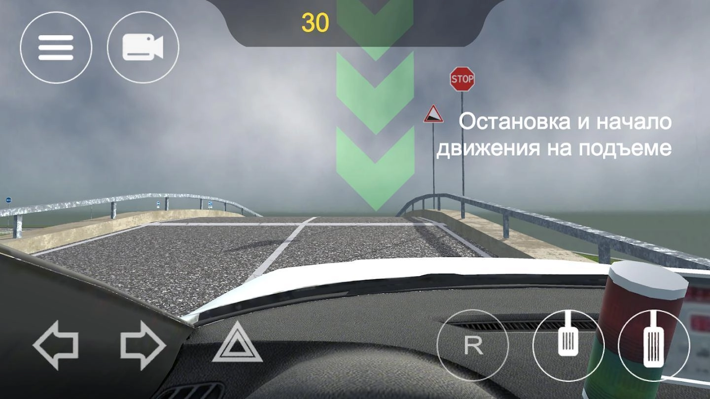 3.进入游戏就能直接开始玩,借助虚拟按键来操控车辆移动;驶过停车线可以获得分数,并且要完成游戏布置的任务;点击顶部的按钮就能切换到第一人称视角进行查看。另外,游戏里还有不少玩法等着玩家自己去探索体验。