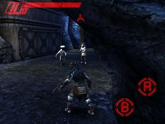 2、从第二关开始,首先触摸屏幕左侧就能移动,进入场景后右转两次,进门里拿腕刀;