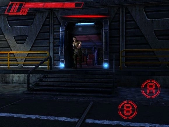 13、进入后向右转,看到左侧的楼梯,上楼后解决掉人类和机器人,再从散弹兵所在的门进入;