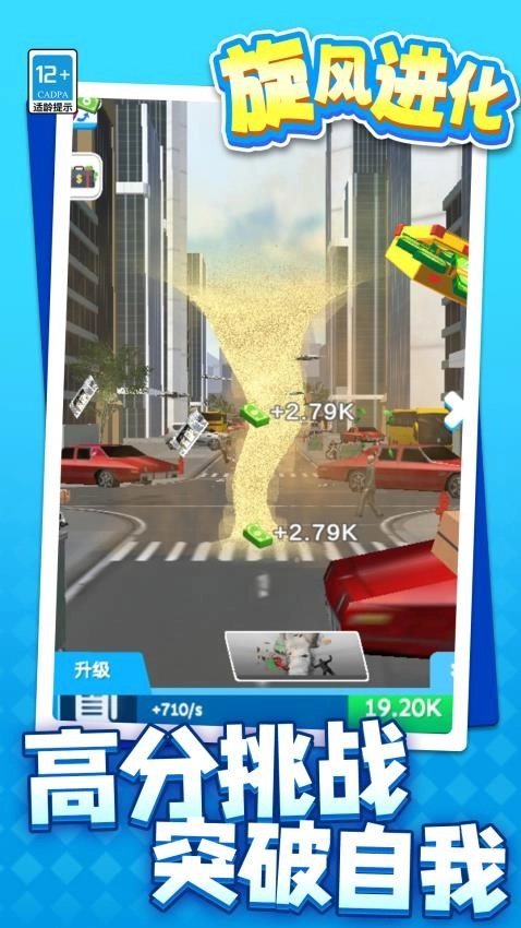 旋风进化是一款精彩解压的模拟游戏,玩家们可以操控龙卷风席卷城市之中,可以破坏各种的建筑物品,为您呈现出震撼壮观的情景,在规定的时间内看看您可以吞噬多少的建筑和物品,还会为您智能化的记录下高分,逐步挑战更多的关卡场景!