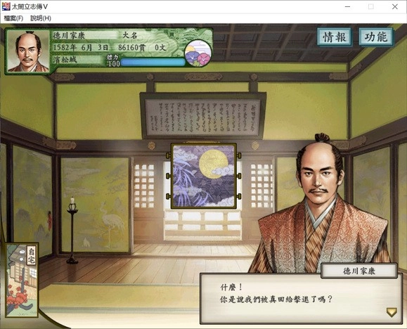 德川家康、丰臣秀吉、上杉景胜、真田昌幸、北条氏政的势力均存在,织田信长已离世。德川家康与丰臣秀吉处于同盟状态(或德川臣服事件是否发生存疑?已发生?),德川家康与北条氏政为同盟关系,德川家康与真田昌幸感情较好,北条氏政与真田昌幸关系一般(通过断交操作测试得知)。真田昌幸的居城位于北信浓国,真田氏领有沼田城,大久保忠世、鸟居元忠、平岩亲吉皆效力于德川家。