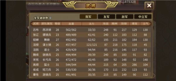 失败条件:吕布阵亡or人数少于13