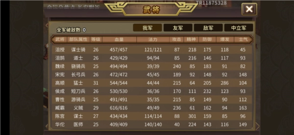 其他:左侧的道士可以给臧霸或者高顺带上孟德新书骗技能(谁智力低给谁)。第四回合给吕布加强行,第八回合左右就可以重新加入战场。敌军武术家移动比策士快,策士会脱节很严重,继续往城里打就行,敌军会翻山越岭,一个个来送。