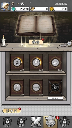 5、另外,获得的金币不仅可以用来升级武器,还能在城堡的秘研功能里研习法术。